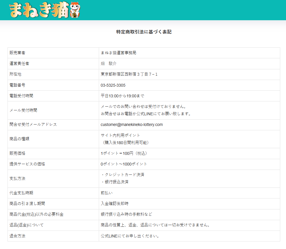 法人情報や所在地以外でもいろいろと検証したところ、まねき猫は詐欺の可能性が非常に高いと判断しました。