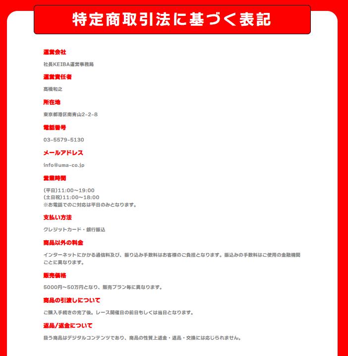 また、運営責任者として記載されている名前は「高橋和之」となっています。この人物が実在するのか、あるいは名義上の代表なのかは不明です。同様に連絡先電話番号は「03-5579-5130」と記載がありますが、こちらも実態を裏付ける情報は乏しく、他の競馬サイトで使われていた番号ではないか注意が必要です。メールアドレスは「info@uma-co.jp」と用意されていますが、果たして迅速かつ誠実な対応が期待できるかは未知数です。総じて、社長競馬の運営者情報は具体性に欠け、運営実態に疑問が残ると言えるでしょう。